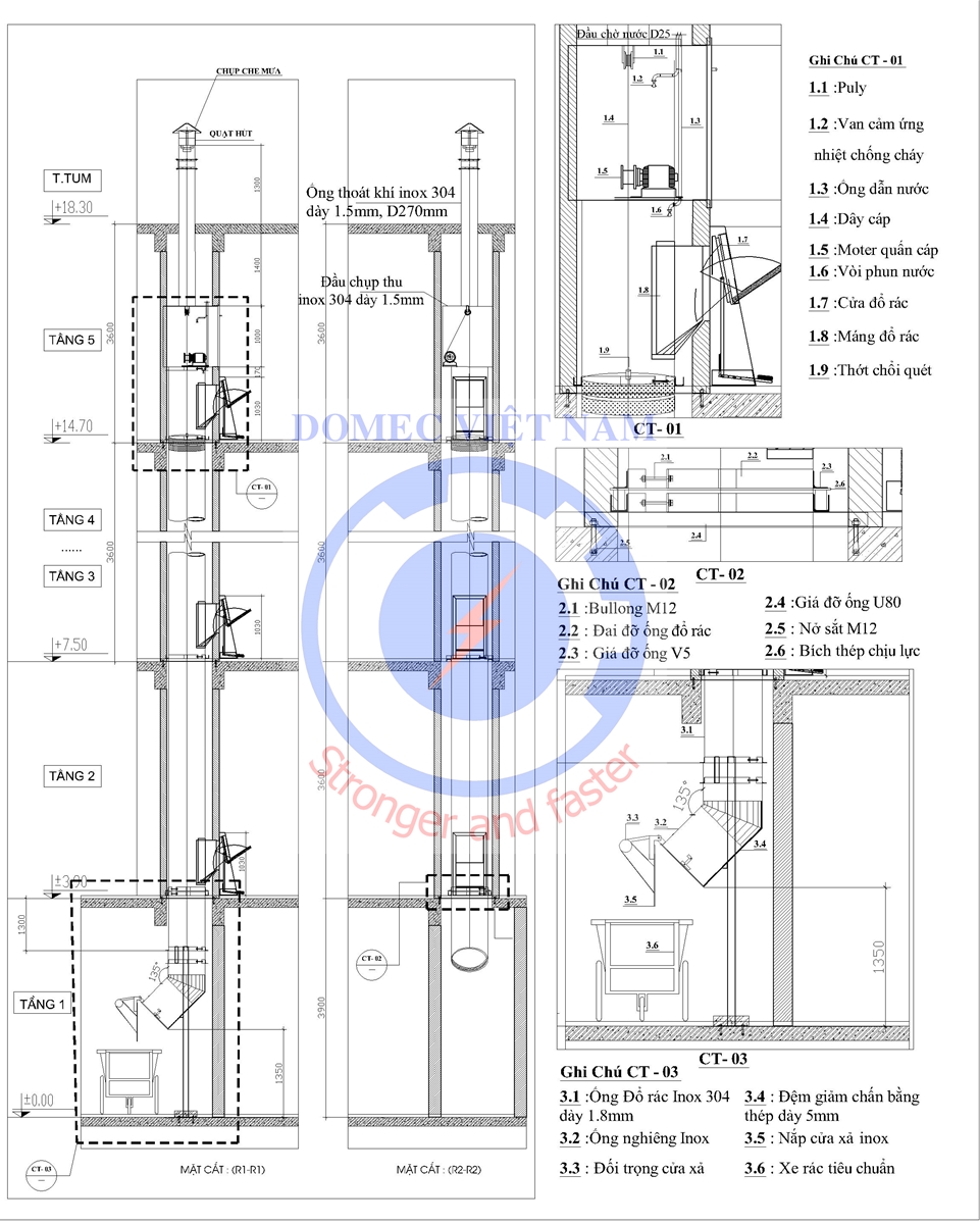 Dưới đây là bản vẽ chi tiết một hệ thống đổ rác, ống rác chung cư mà Công ty cổ phần cơ điện Domec Việt Nam đã triển khai thi công: